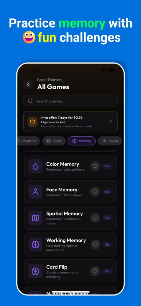🎮 Brain Training Games (73 Games – Industry Leading!)