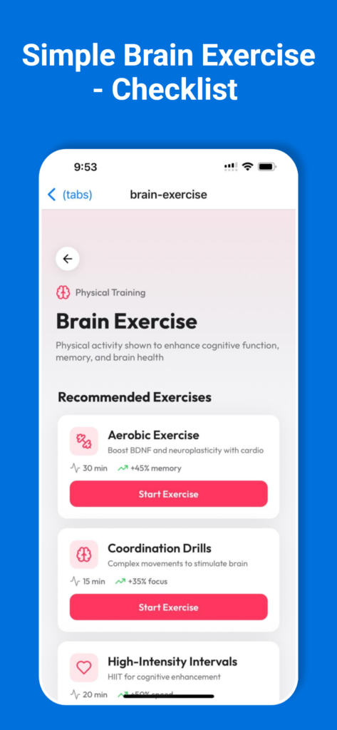 3. •Brain Exercise (NEW badge) – Physical activities for cognitive enhancement