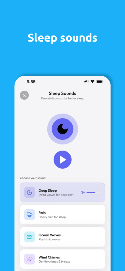 4. •Sleep Sounds – 8 sleep soundscapes with moon animation
